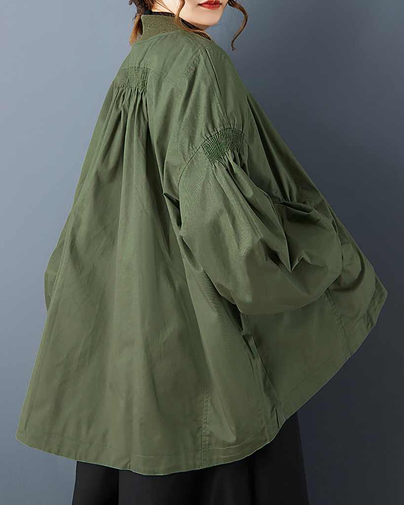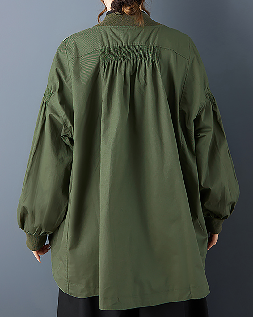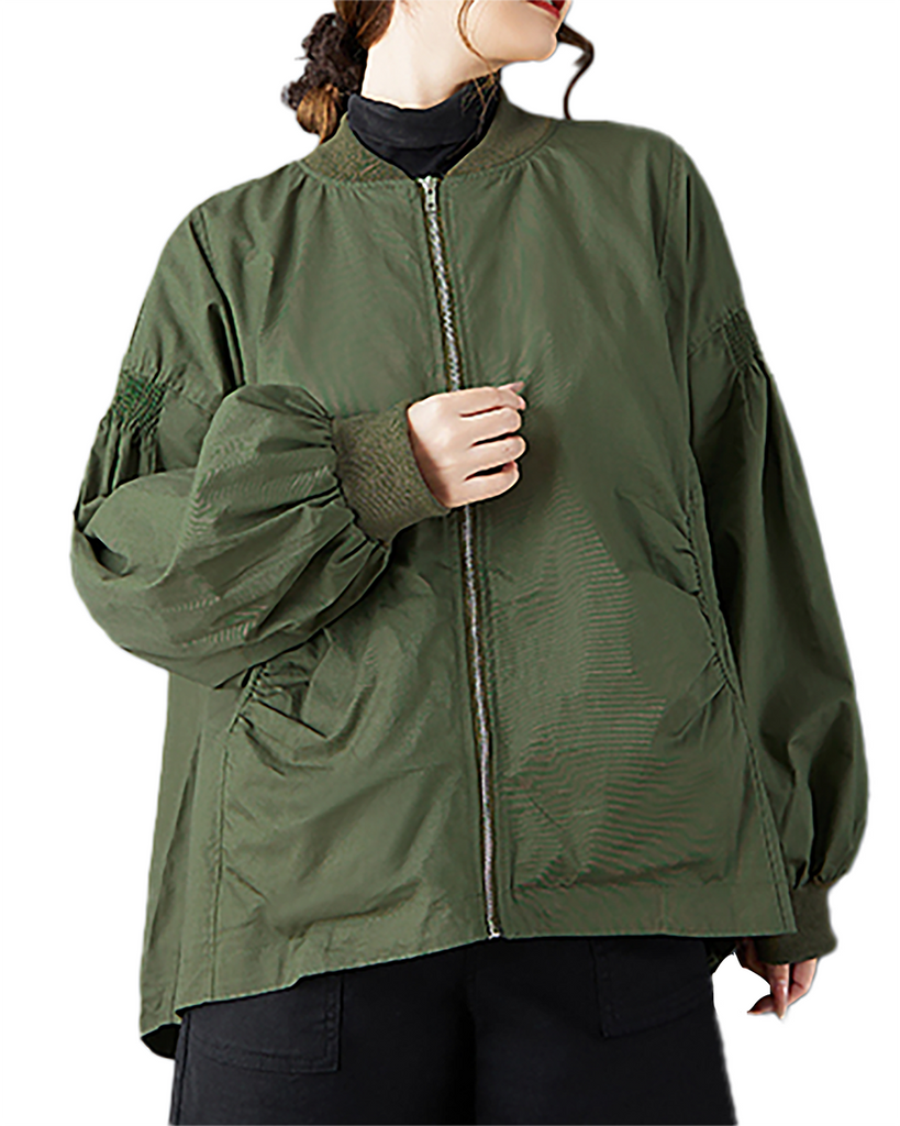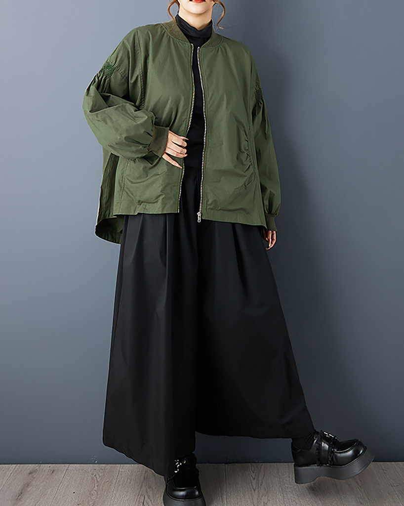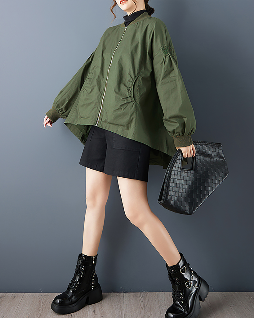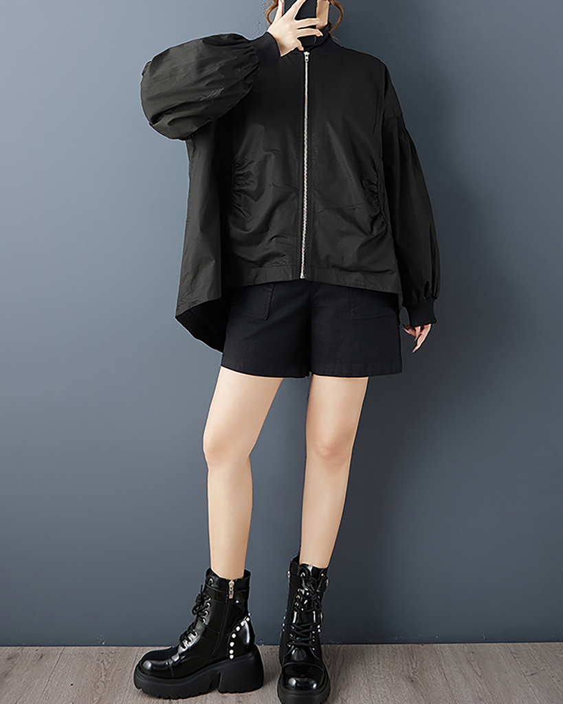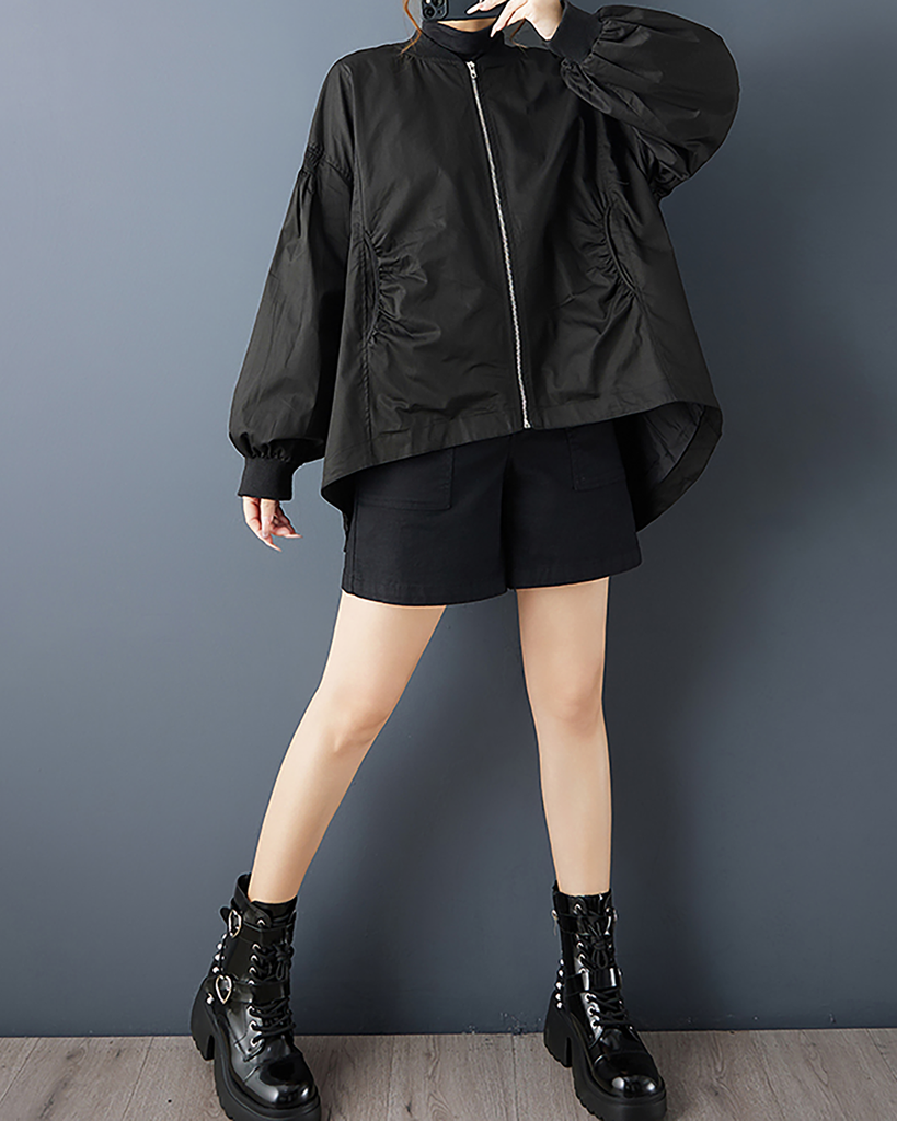 ellazhu Women's Coats Mock Neck Solid Long Sleeve Zip Up Plus Size High-low Hem Side Pockets GZ697 Black