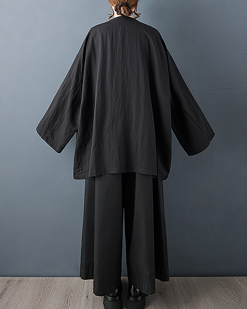 ellazhu Women's Coats V-neck Solid Vintage Long Sleeve Button Down Plus Size Side Pockets GZ701 Black