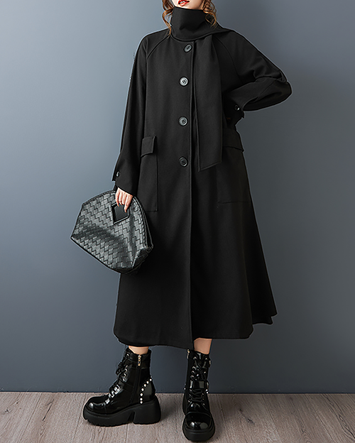 ellazhu Women's Coats Shawl Collar Button Down Solid Long Sleeve Side Pockets Maxi Hem GZ720 Black