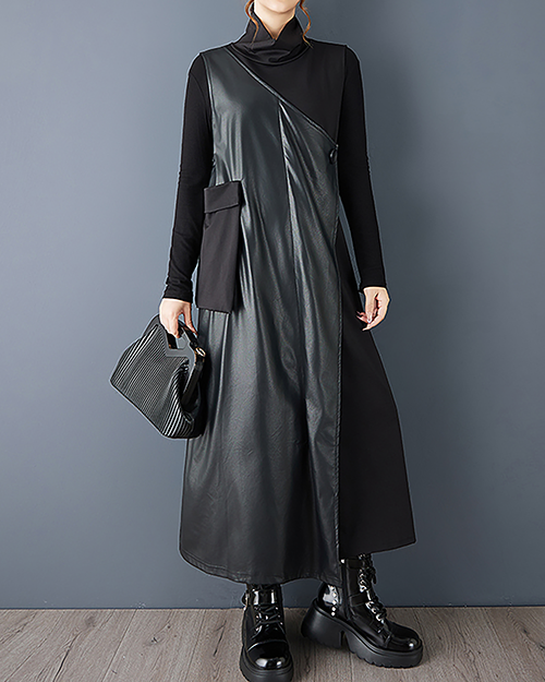 •Features: This women's dress features the mock neck and patchwork design for a sophisticated and trendy look. And the sleeveless design can keep us fashionable. What's more, maxi irregular hem create the charming and fashion silhoute. The dress can be worn in the daliy life and casual occassion. Convenient side pockets for hands-free movement