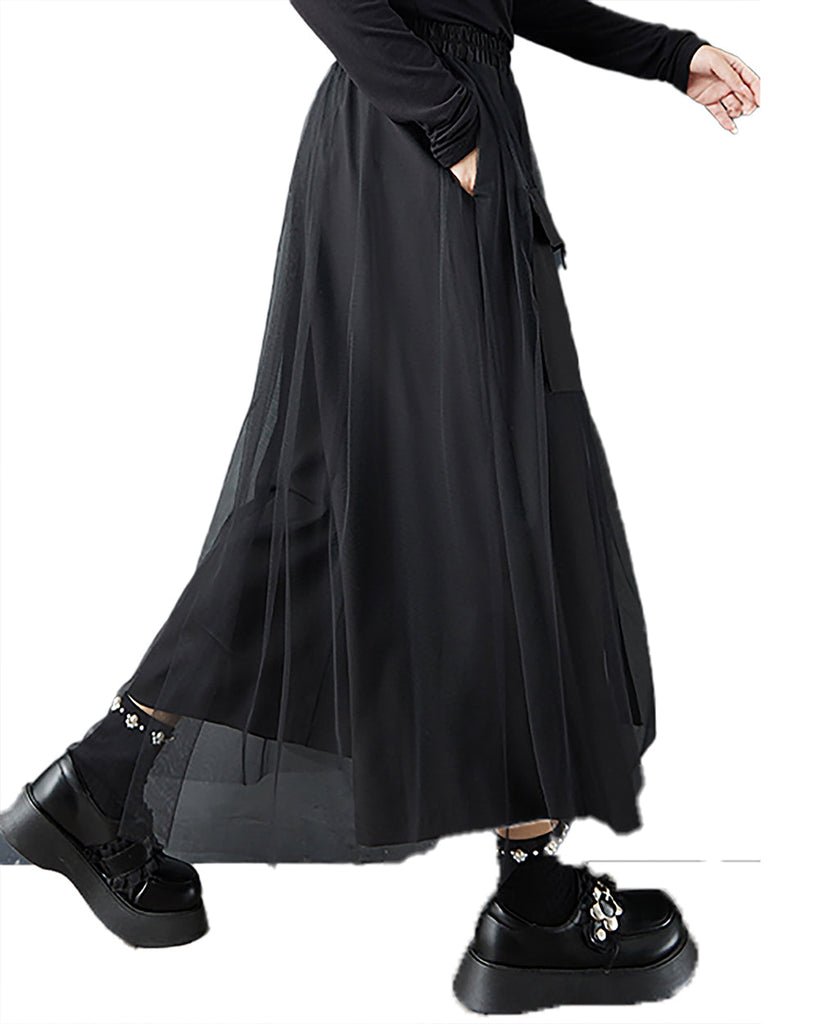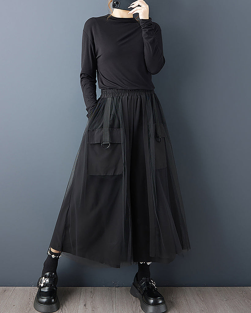 ellazhu Women's Pants Loose Wide Leg High Elastic Waist Patchwork Sweatpants Side Pockets GZ693 Black
