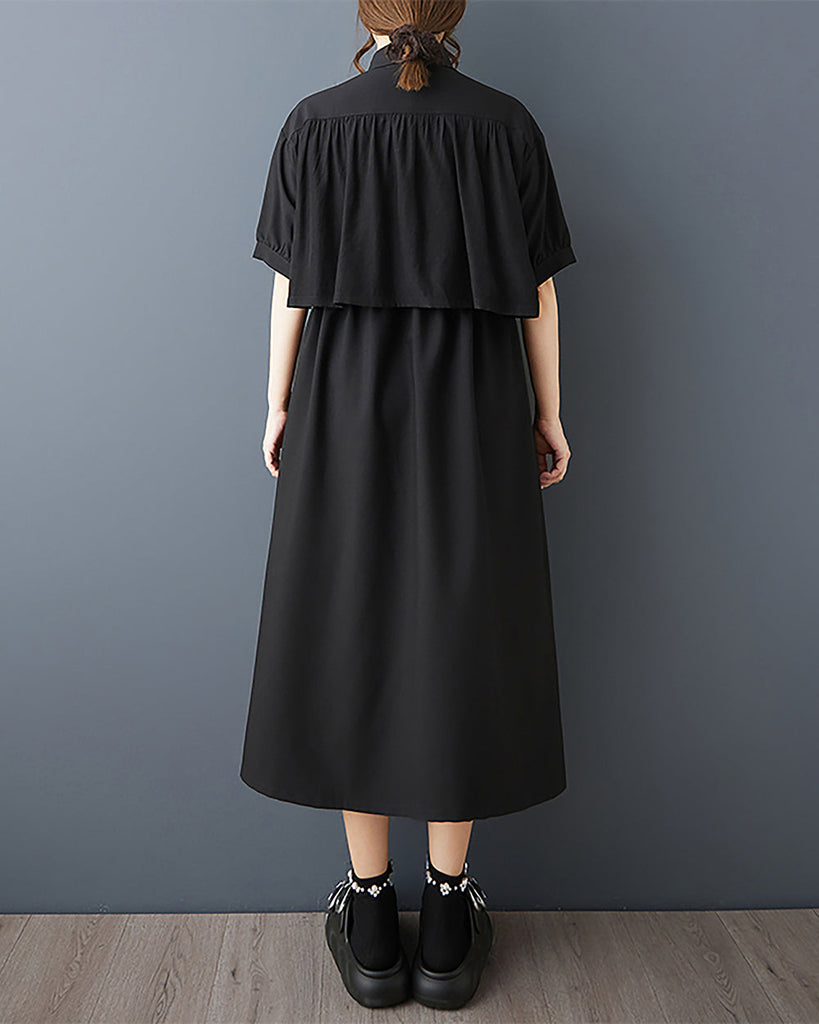 ellazhu Women's Dress Solid Lapel Button Down Two Side Pockets Short Sleeve Plus Size Maxi Loose Casual Fashion GZ587 Black