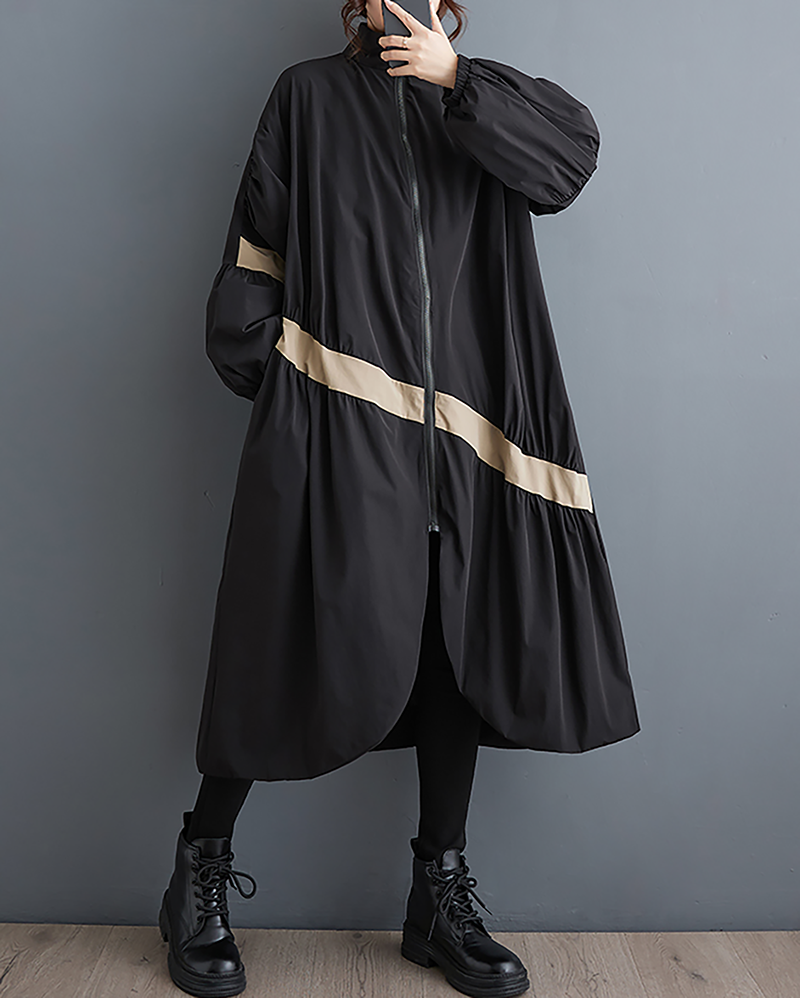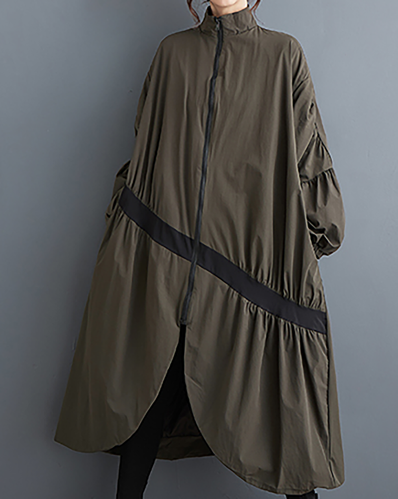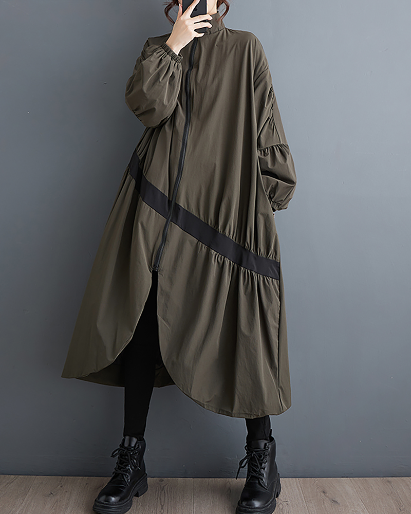ellazhu Women's Coats Mock Neck Long Sleeve Oversize Zip Up Long Split Hem Printed Outerwear Side Pockets GZ667 Army Green