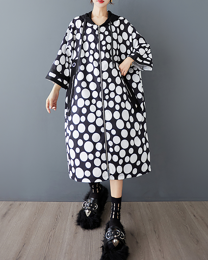 ellazhu Women's Coats Hooded Long Sleeve Zip Up Side Pockets Printed Polka Dot Plus Size Fashion Casual Maxi GZ672 Polka Dot